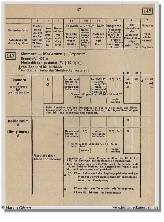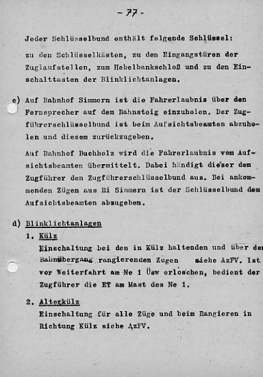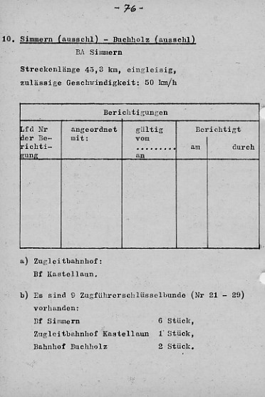 Zusatzbestimmungen für den Zugleitbetrieb der Stecke Simmern - Buchholz Zugleitbahnhof ist Simmern Stand 01.07.1972 |