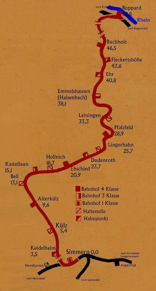 „Hunsrückbahn“ – die Boppard auf der einen Seite als Ausgangspunkt hatte und